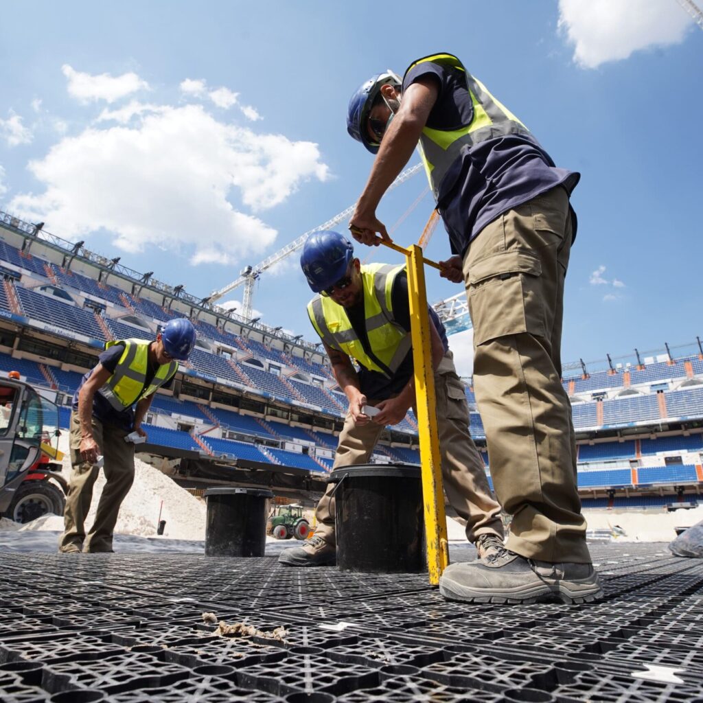 Les enjeux du sport professionnel ne sont pas les mêmes que ceux du sport amateur : les retransmissions télévisées interdisent non seulement tout retard dans la livraison d’un terrain, mais aussi toute imperfection qui pourrait nuire à l’image médiatique. C’est pourquoi Natural Grass a constitué une équipe de professionnels expérimentés dans le domaine de la construction de surfaces de grands jeux, utilisant un parc matériel innovant et constamment renouvelé, et épaulés par un bureau d’études d’experts. De la planification jusqu’à l’exécution, rien n’est laissé au hasard.